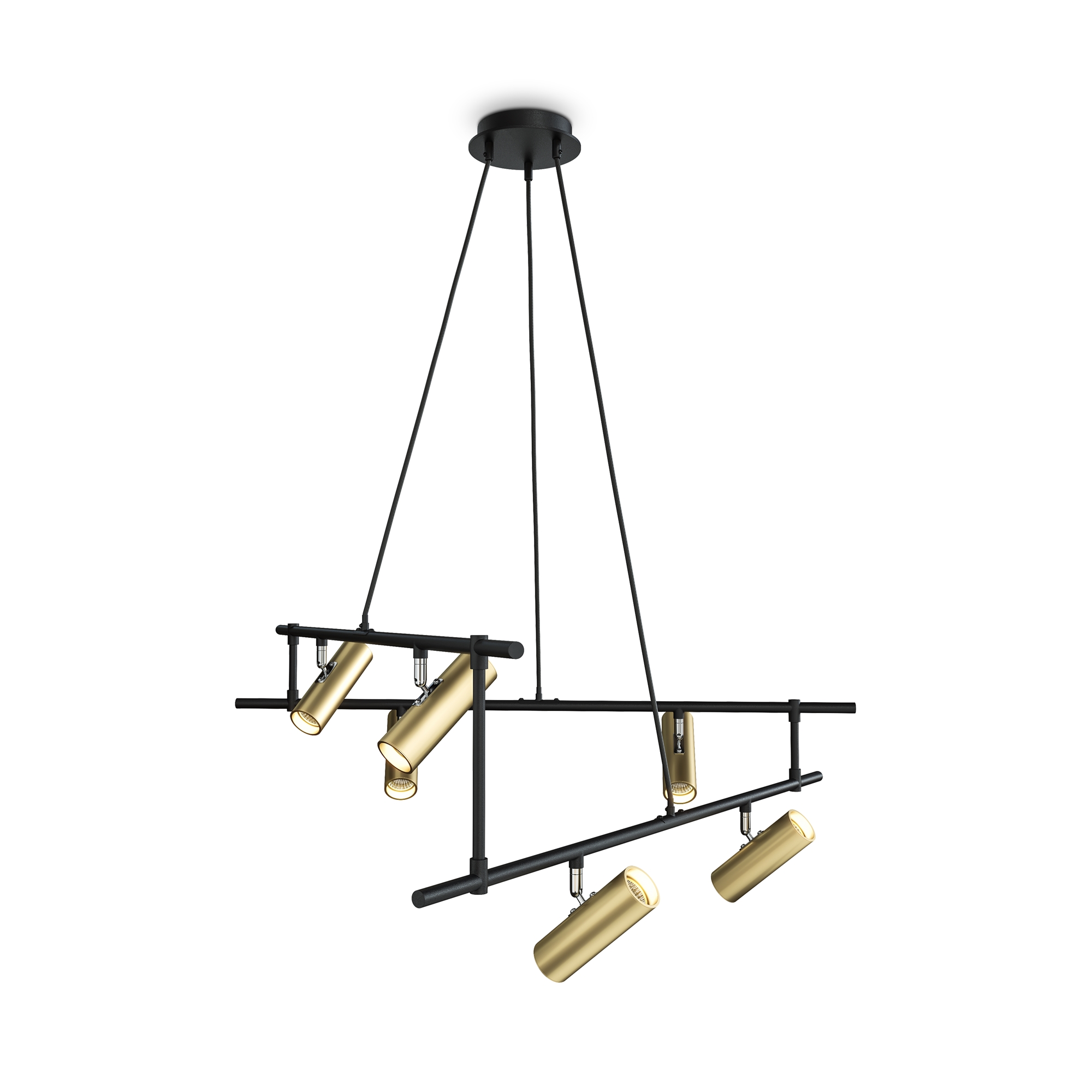 Арматура и плафоны из металла в 2 оттенках: черный с белым, черный с золотом. Плафоны с поворотным механизмом. Трендовая асимметрия в дизайне.