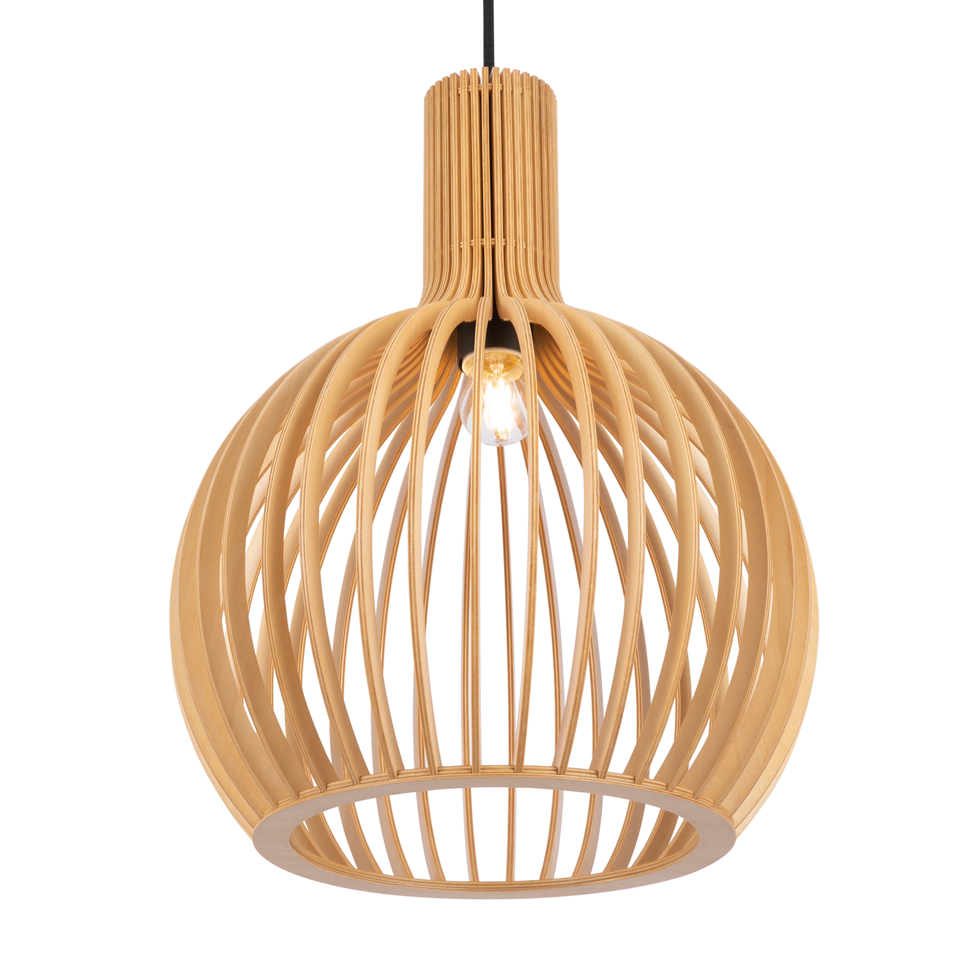 Материал арматуры – металл, цвет – черный. Абажур – 5-ти слойная фанера бежевого оттенка, покрытая специальным ла- ком. Тканевый черный провод. Регулируемая высота. Простые лаконичные форма, природные материалы. Цоколь E27.