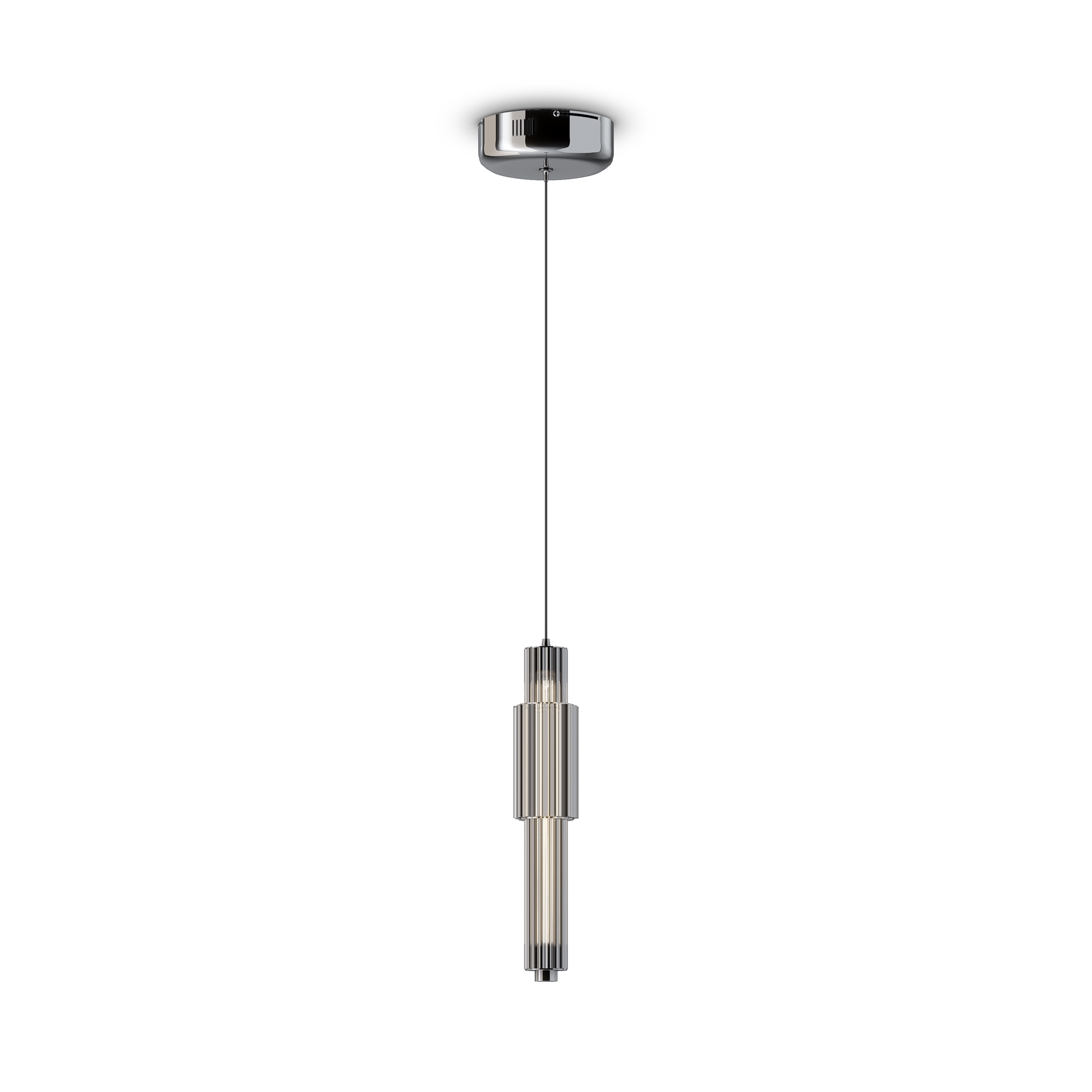 Материал арматуры – металл, цвет – хром. Декоративный плафон из литого ребристого стекла. Оттенки плафона: коньячный и хром. Источник света – светодиодная лента. Цветовая температура 3000К