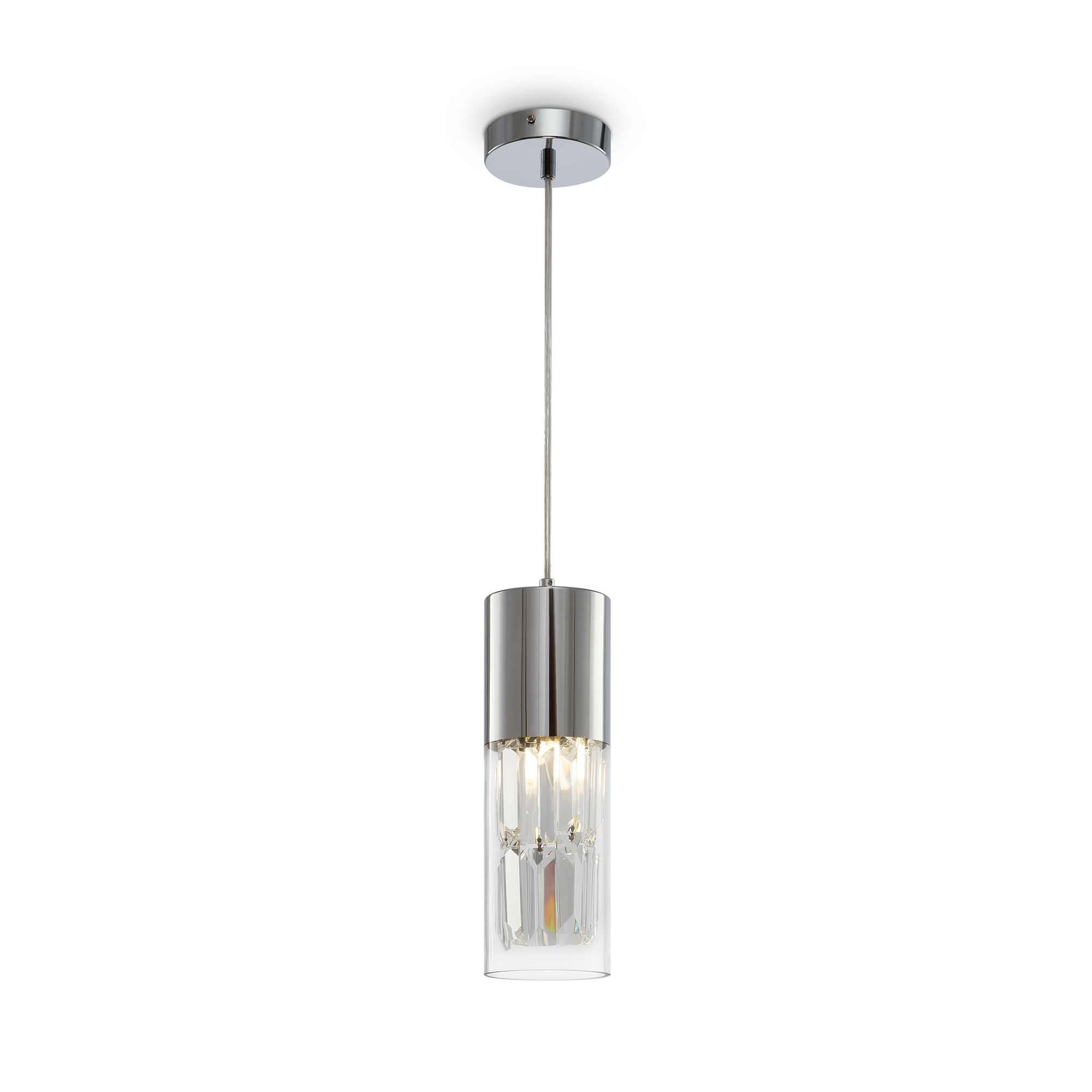 Арматура из нержавеющей стали в двух оттенках: хром, золото. Плафон из выду вного стекла, внутри – хрустальные подвесы. Часть плафона с зеркальным покры тием в тон арматуре. Цоколь Е14.