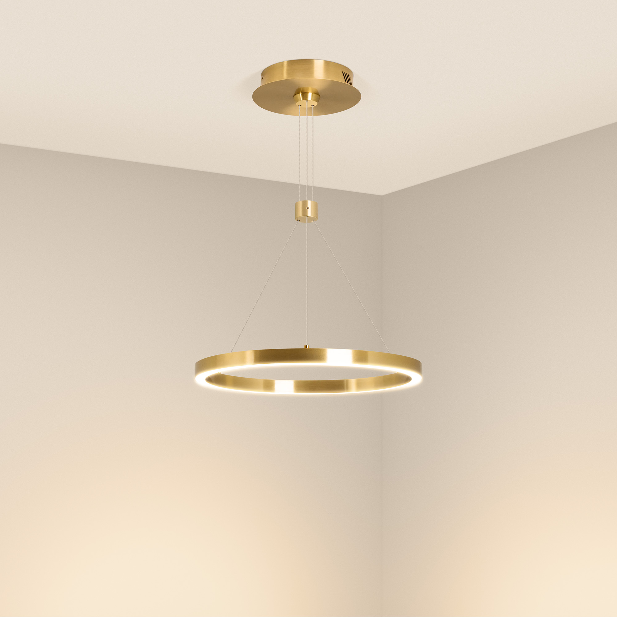 Подвесной светодиодный светильник CONGO мощностью 24 Вт предназначен для основного или декоративного освещения в жилых, коммерческих, офисных помещениях. Светильник в современном стиле хай-тек с широким углом излучения 120 градусов будет оригинально смотреться в разных интерьерах. Максимальная длина регулируемого подвеса 1200 мм. Подключение осуществляется с помощью встроенного драйвера напрямую к сети переменного тока 230 В. Индекс CRI>90 отвечает за отличное восприятие и передачу цветовых оттенков. Низкая пульсация обеспечивает комфортное освещение без мерцания. Алюминиевый корпус светильника выполнен в форме круга, а матовый экран из силикона создает равномерное свечение без видимости точек от светодиодов. Пылевлагозащита на уровне IP20 позволяет применять модель внутри помещений, где нет контакта с водой или другими жидкостями. Комбинации из нескольких светильников разного диаметра эффектно будут смотреться в зонах лобби гостиниц, вестибюлях театров или торговых центрах.