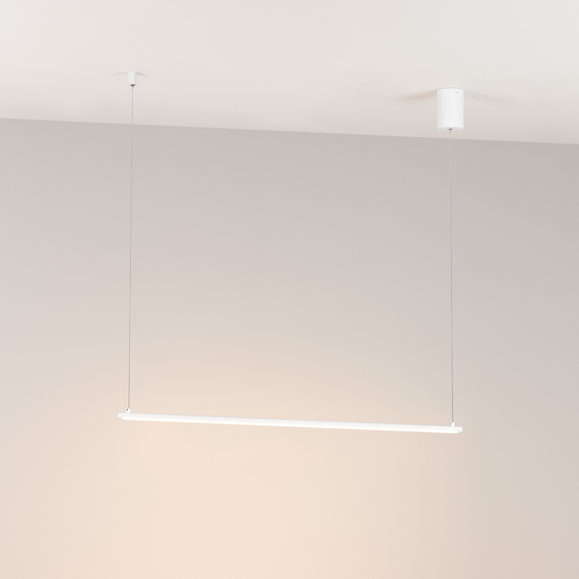 Декоративный подвесной светильник мощностью 15 Вт с теплым белым цветом свечения (3000 К). Сбалансированный минималистичный дизайн и высокая световая эффективность. Горизонтальное свечение вниз. Белый изящный корпус из металла длиной 910 мм на регулируемом тросе стильно смотрится в жилых и офисных помещениях. Регулируемая длина подвеса позволяет размещать светильники на разной высоте и подстраивать их под высоту потолков. Световой поток 675 лм и высокий индекс цветопередачи (CRI>90) для качественного освещения. Драйвер в комплекте для подключения к сети 230 В.