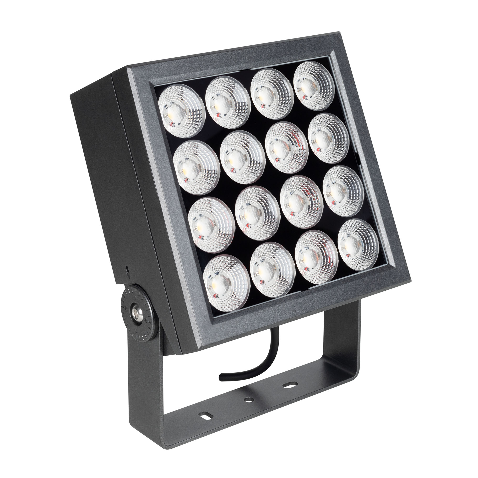 Уличный светодиодный прожектор BLOCK мощностью 50 Вт создан для освещения различных элементов архитектуры, таких как фасады зданий, малые архитектурные формы, деревья и декоративные растения. Конструкция корпуса позволяет плавно менять направление света в вертикальном направлении в пределах 120 градусов, а также угол рассеивания света 60 градусов, делают его удобным для локального освещения конкретных объектов. Корпус прожектора изготовлен из алюминия с анодно-оксидным покрытием, которое защищает его от механических повреждений и коррозии. Оптические элементы защищены закаленным стеклом. Уровень защиты IP66 обеспечивает устойчивость прибора к воздействию пыли и влаги, позволяя использовать его в различных погодных условиях. Клапан выравнивающий давление позволит избежать образования конденсата и влаги внутри светильника. Встроенный драйвер облегчает подключение к стандартной сети 230В, а наличие провода длиной 0,3 метра в комплекте упрощает процесс установки.