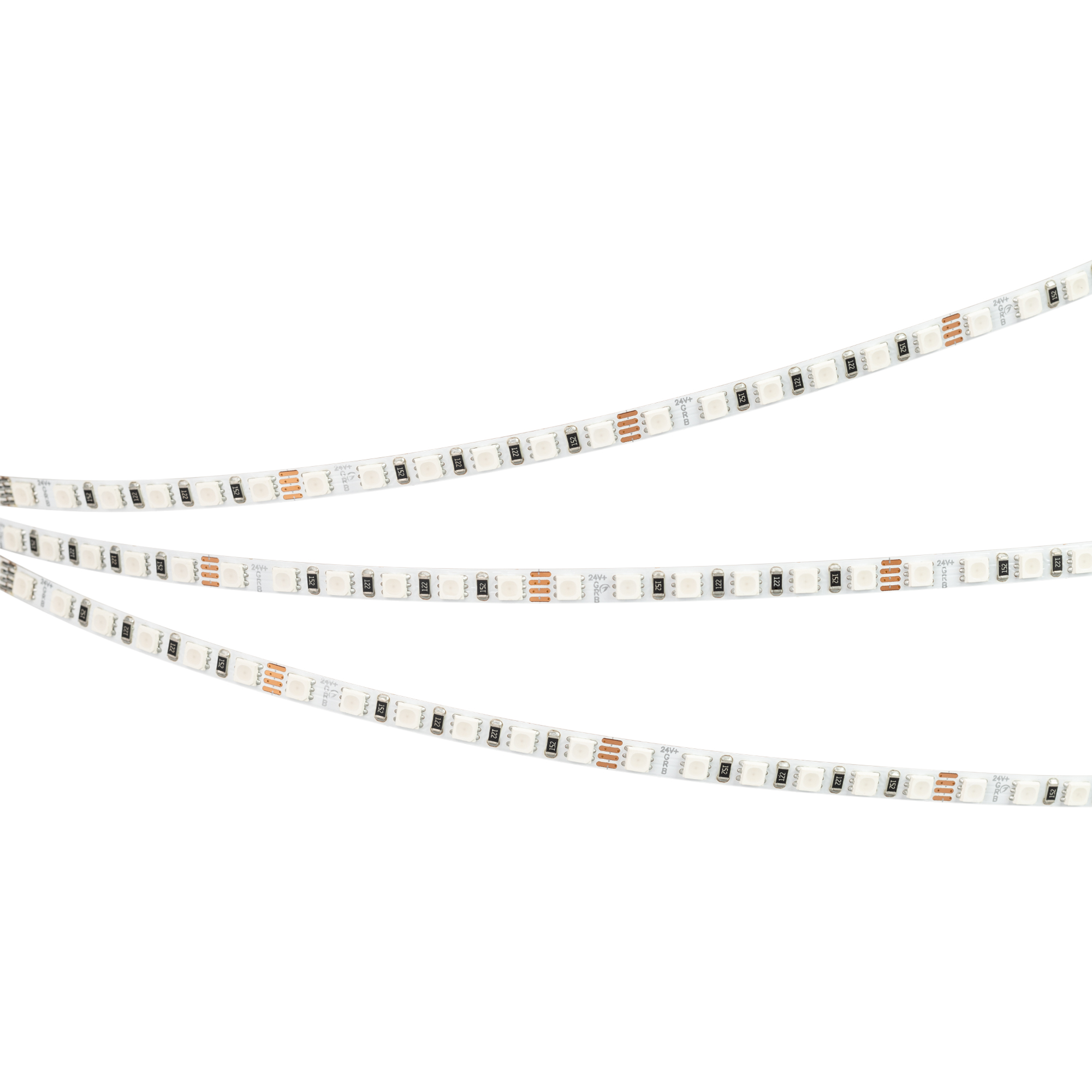Мультицветная светодиодная лента RT серии G120 шириной 5 мм, мощностью 7.5 Вт/м. цвет свечения RGB. Напряжение питания 24 В. Светодиоды SMD 3838 (120 шт/м). Минимальный отрезок 50 мм (6 светодиодов). Трехканальная лента с 4 проводами для подключения, управляется RGB-контроллером. Применяется для создания яркой цветной декоративной подсветки элементов интерьера, ниш, рекламных конструкций, витрин, зон отдыха.