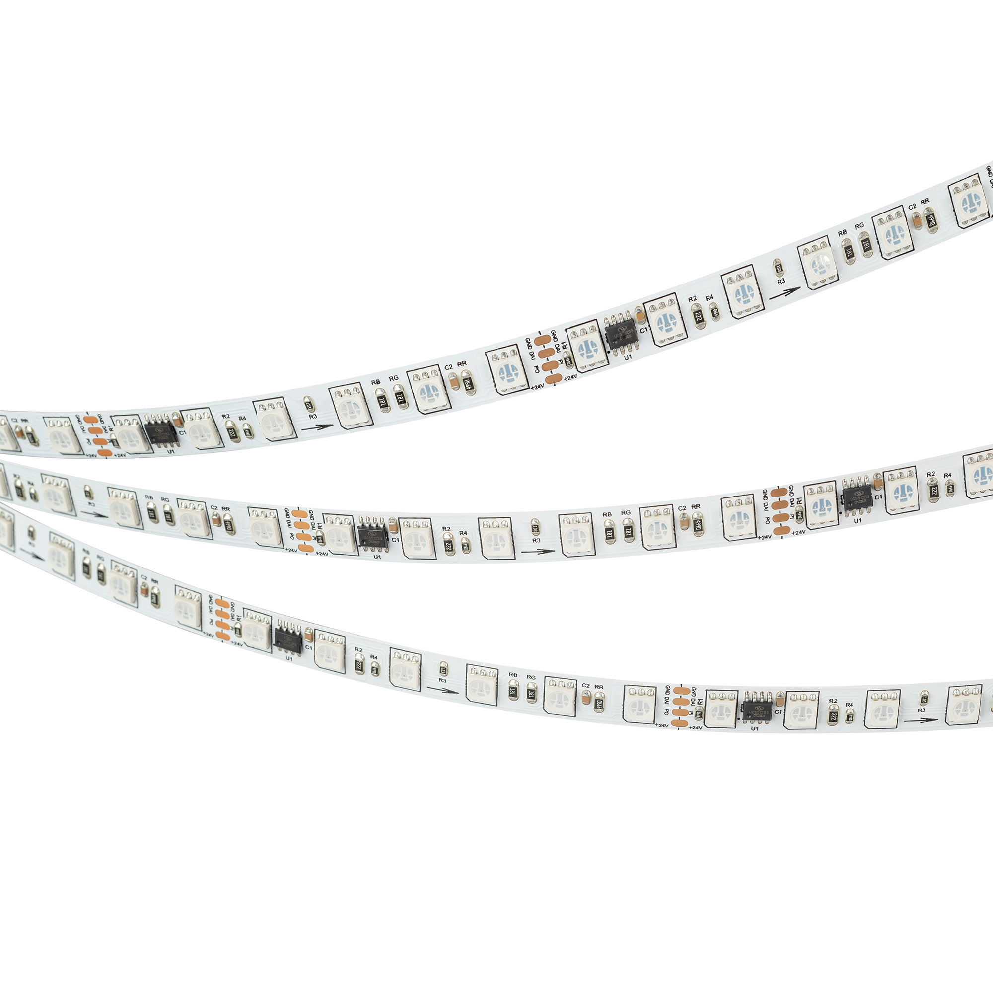 Открытая лента DMX с микросхемой UCS512. Управление через внешний контроллер (совместимый c микросхемами GS8515, GS8513, TM512, SM17512, QED512P, MY9941) по стандартному протоколу DMX512. Используется для воспроизведения многоцветных световых эффектов различной сложности: от простейших эффектов до воспроизведения динамических изображений на мультимедийных экранах. Применяется для создания рекламных вывесок, оформление витрин, помещений для дискотек, ресторанов, театрализованных шоу, изготовление медиафасадов.