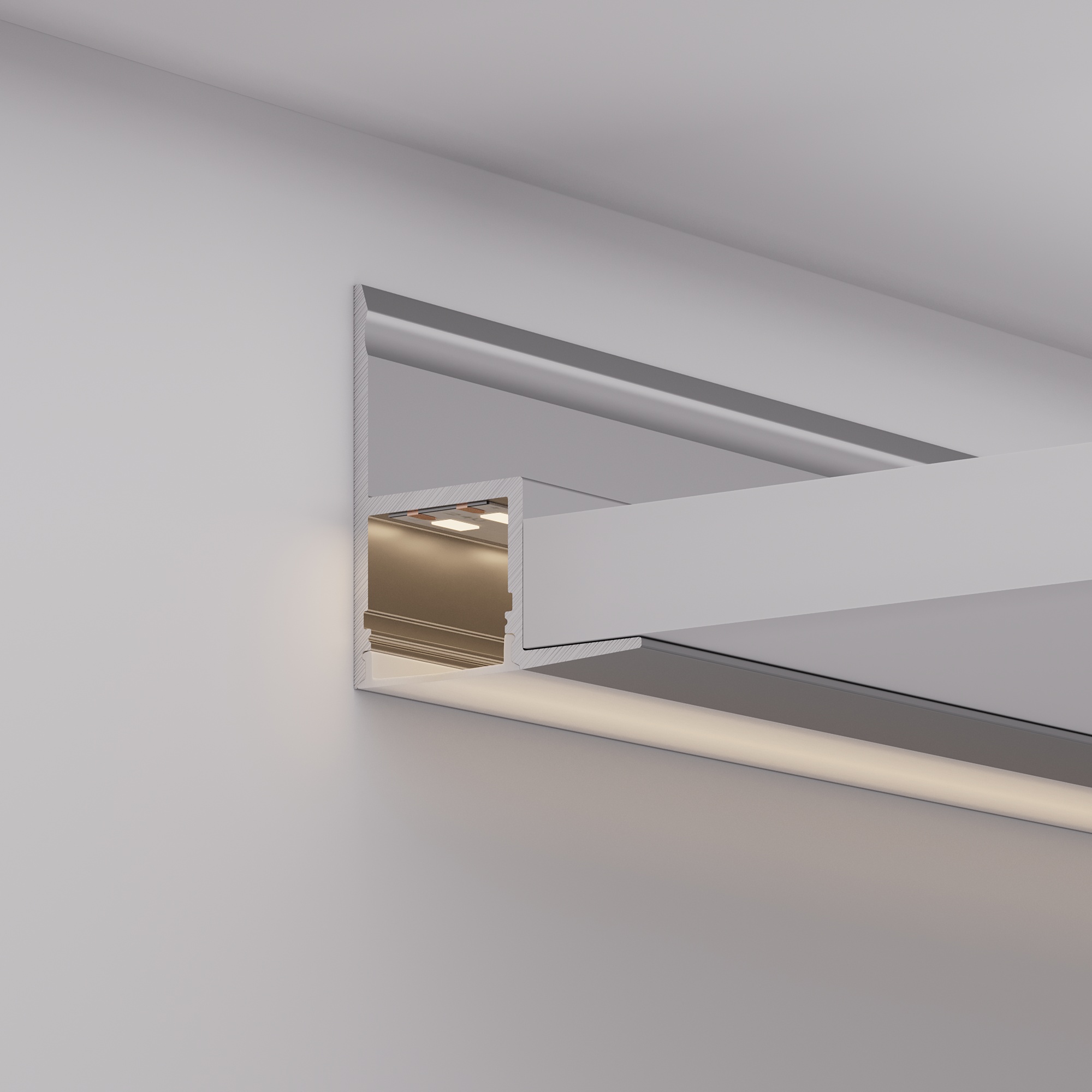 Встраиваемый профиль с накладным фланцем из анодированного алюминия для контурной подсветки ниш, карнизов и углов.