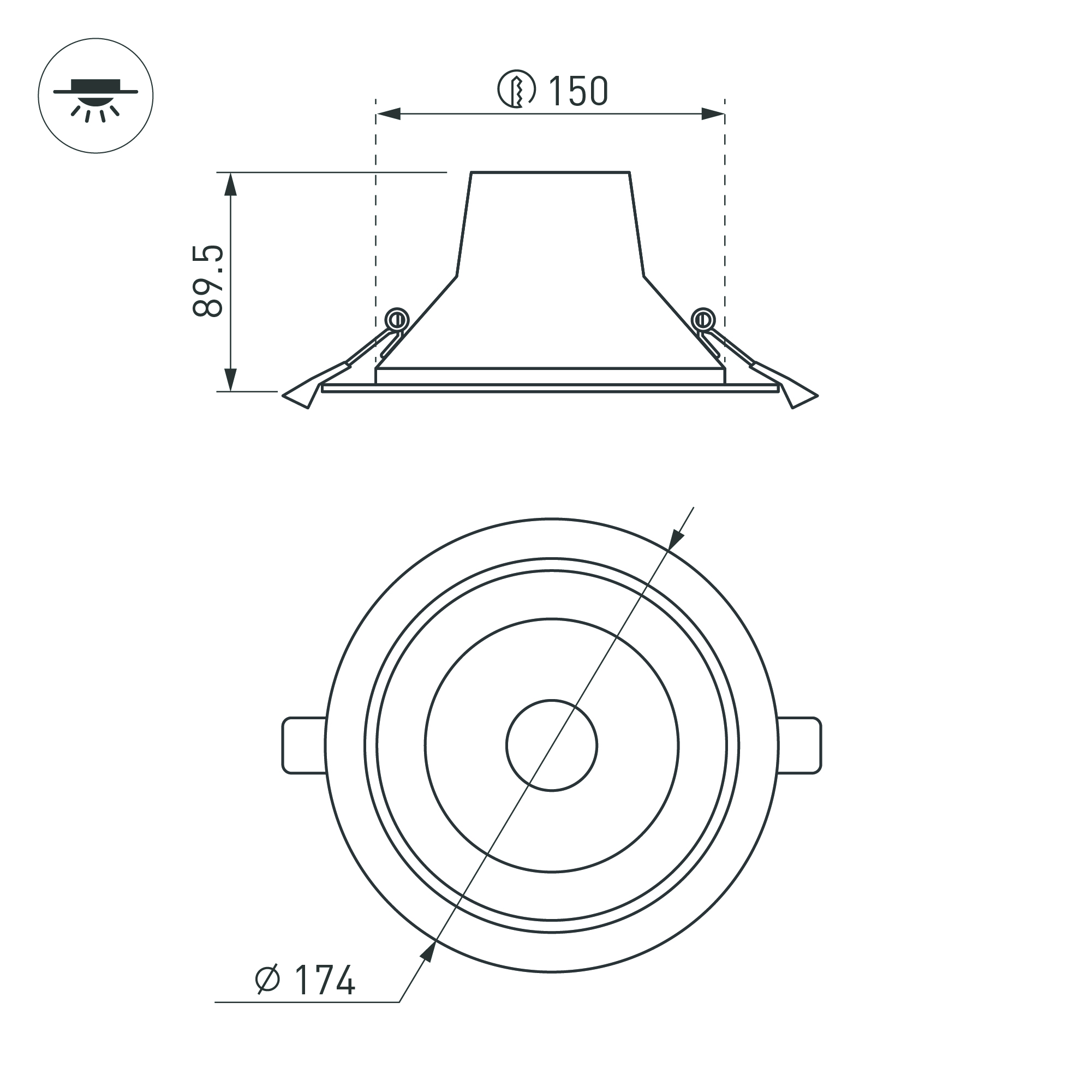 | Монтажное отверстие, диаметр | 150 мм |