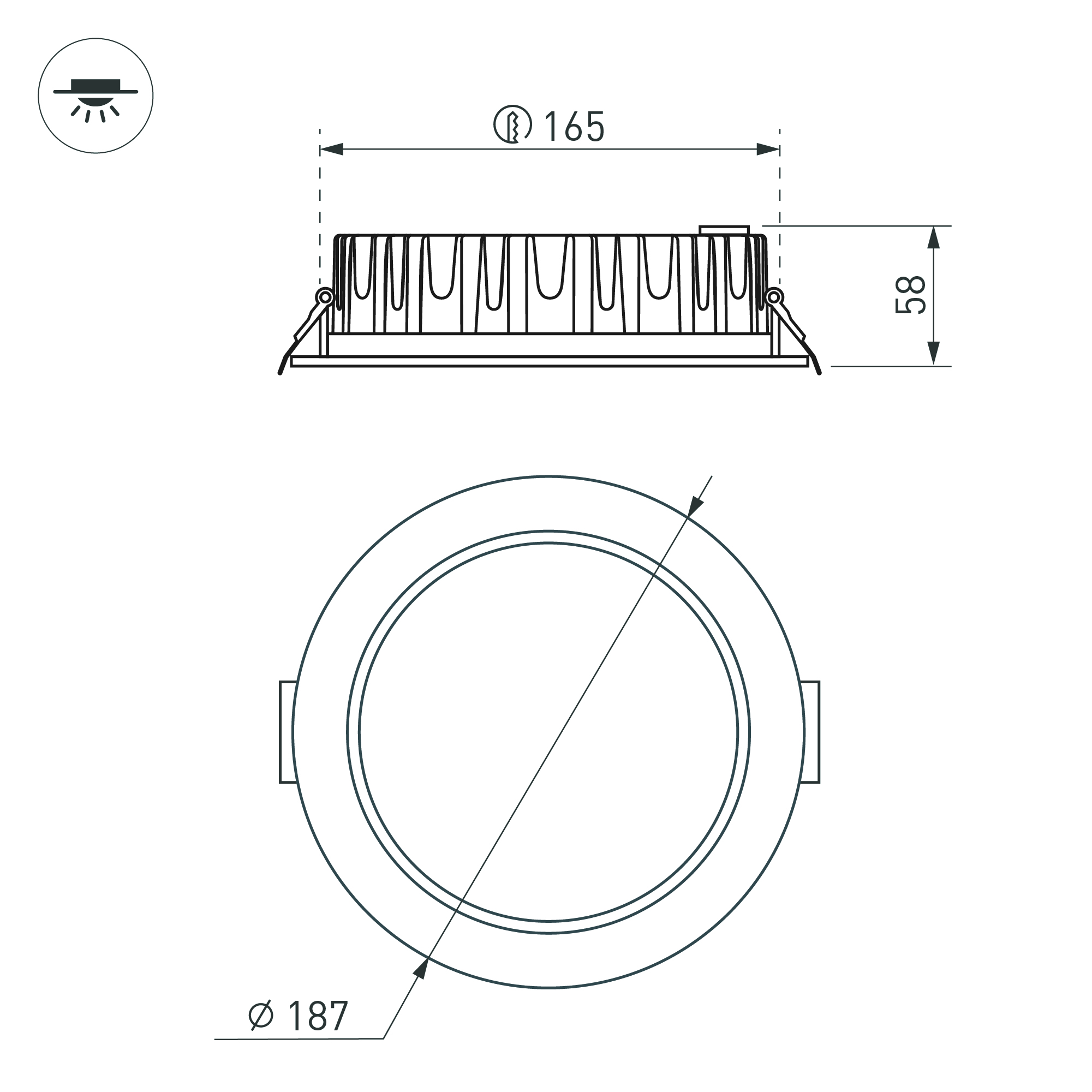 | Монтажное отверстие, диаметр | 165 мм |